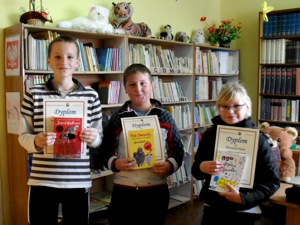 Lektur. Nagrody odebrało pięcioro uczniów z klasy I i II. |